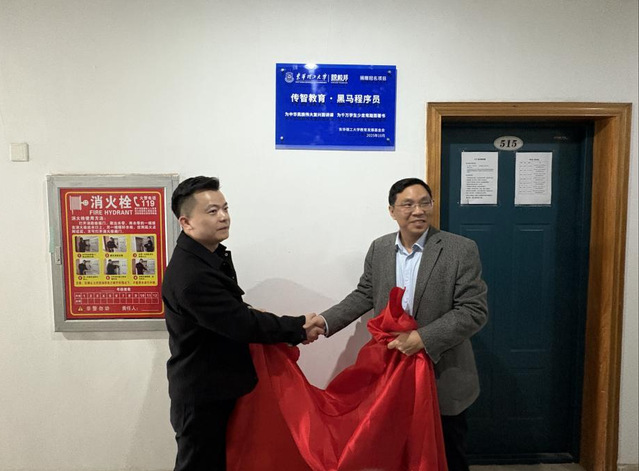 签约仪式后,双方移步国防科技楼515教室,李祥与翁发达共同为企业冠名教室揭牌。