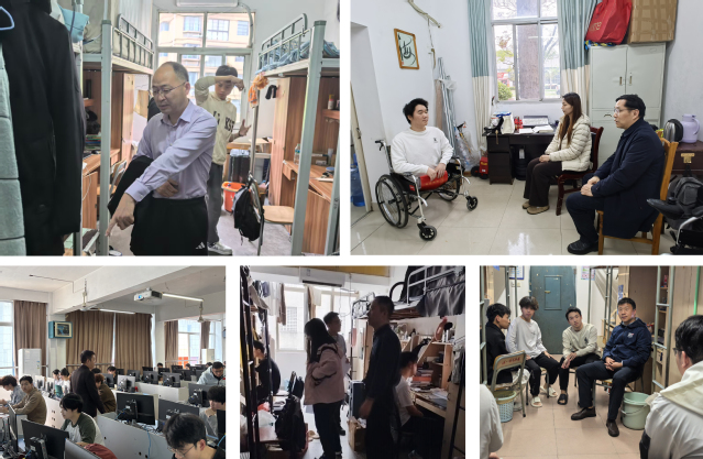 学习教育期间,学院领导班子带头示范、分层分类开展走访调研与精准帮扶。党委书记江雁飞、院长李祥深入2023 级、2024 级学生宿舍,面对面倾听学生在宿舍生活、学业规划、课程适配等方面的真实诉求,逐一梳理意见建议,及时回应学生普遍关切。党委副书记司红伟聚焦学业困难、心理困惑、就业困境三类重点学生,开展专项走访,建立 “一对一” 学业帮扶机制,引入心理健康教育资源,整合企业招聘信息,用心用情为学生排忧解难。副院长王强紧扣专业教学与实践育人,深入课堂与实训基地,优化实训课程设置,强化竞赛指导资源供给。副院长庞振宇立足科研管理与毕业服务,走进2022级学生,细致了解毕业论文写作进度与难点,做好针对性指导与保障支撑,助力学生顺利毕业、高质量就业。